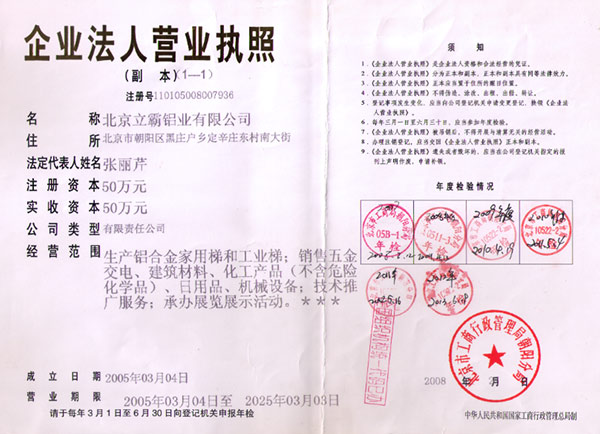 北京立霸鋁業有限公司是集研發(fā)、生產和銷售各種鋁合金工業型材、管材、板材、鋁合金梯子材料及梯子配件、鋁合金梯子、絕絕梯子、鋁合金液壓升降平臺等系列產品的專業廠家。
